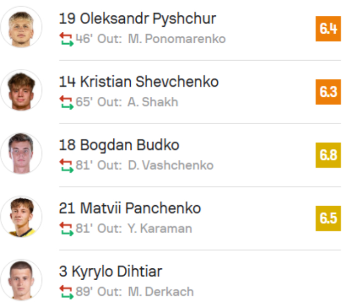 Игроки сборной Украины U-20 получили оценки от SofaScore за матч против сборной Испании на ЧМ-2025