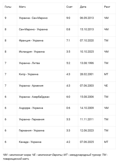 Самые результативные матчи с участием сборной Украины
