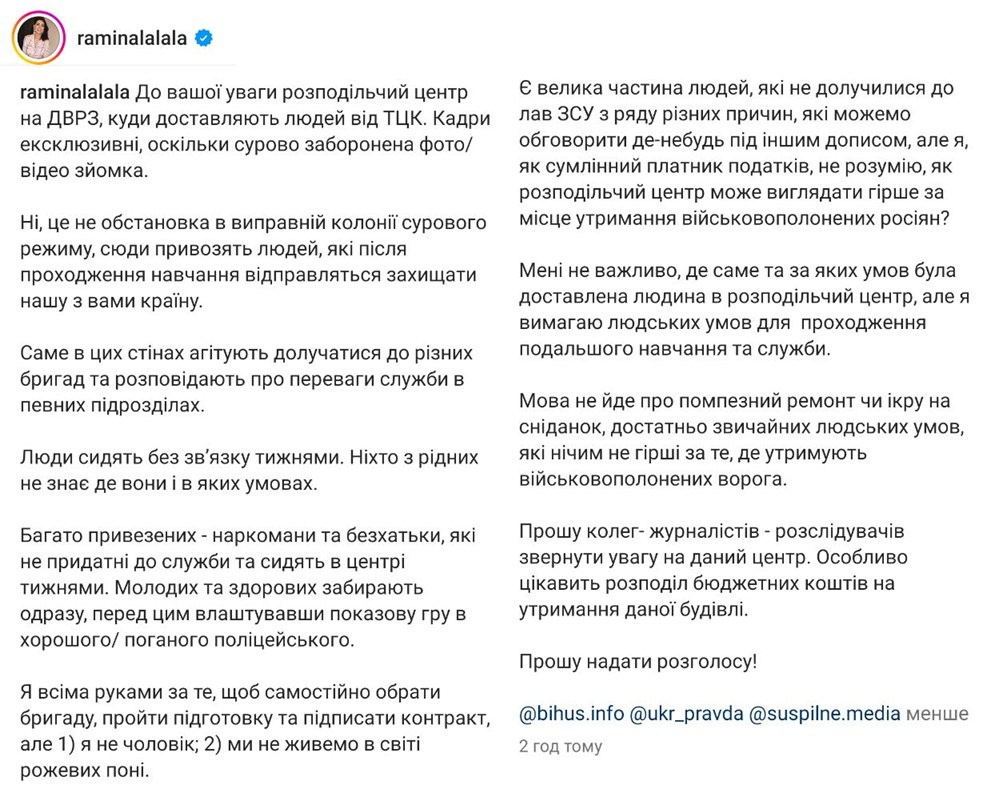Блогерша и журналистка Рамина Эсхакзай показала ужасающие условия временного содержания мобилизованных и военнообязанных на ДВРЗ