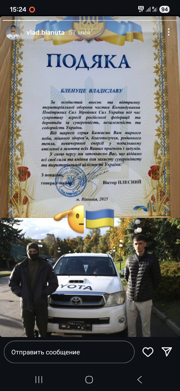 Форвард "Динамо" Блэнуцэ получил благодарность от генерал-майора ВСУ
