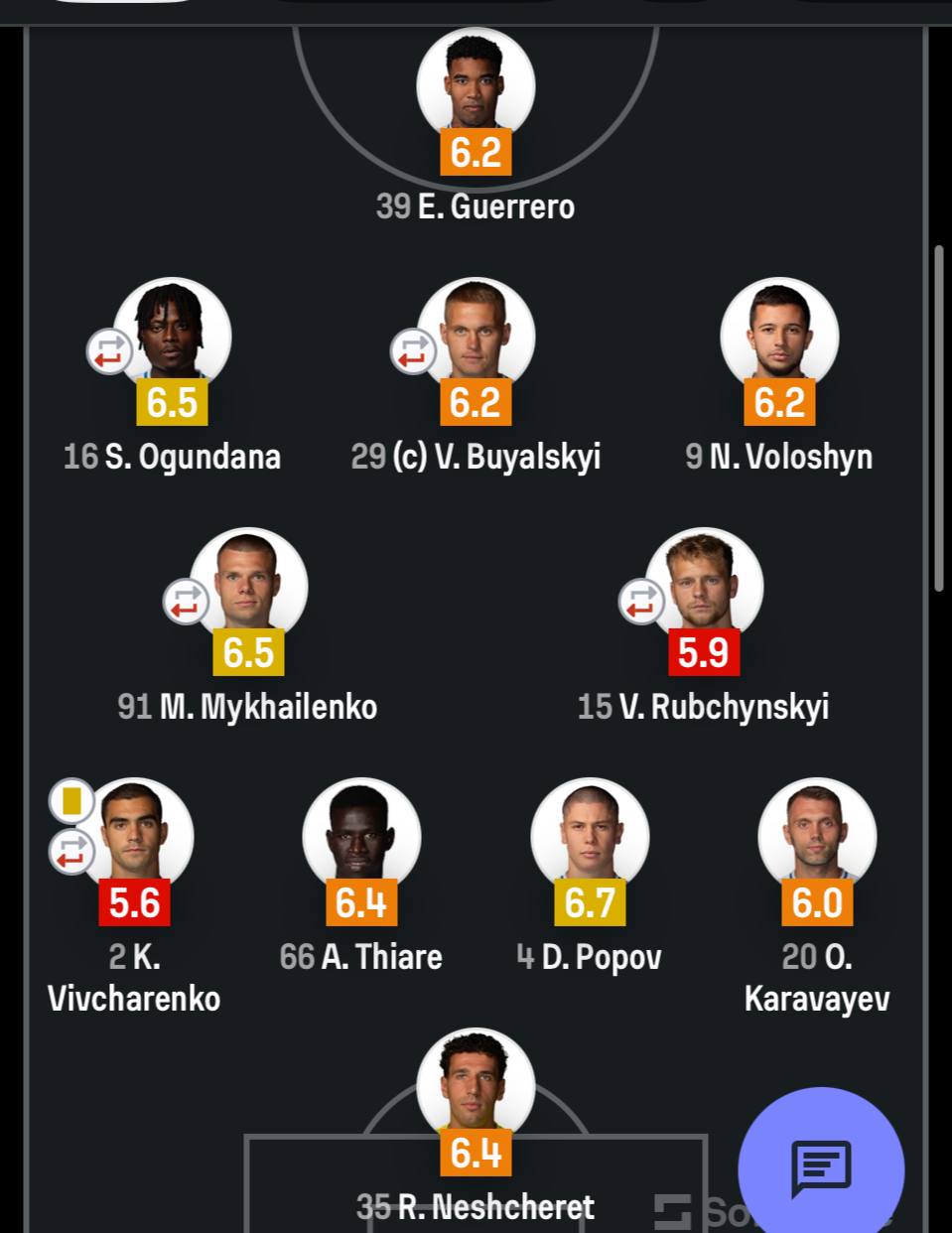 У кого самый низкий балл? Игроки "Динамо" получили оценки от SofaScore за матч против "Самсунспора"