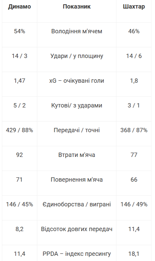 "Динамо" больше владело мячом, у "Шахтера" лучший xG. Статистика Классического