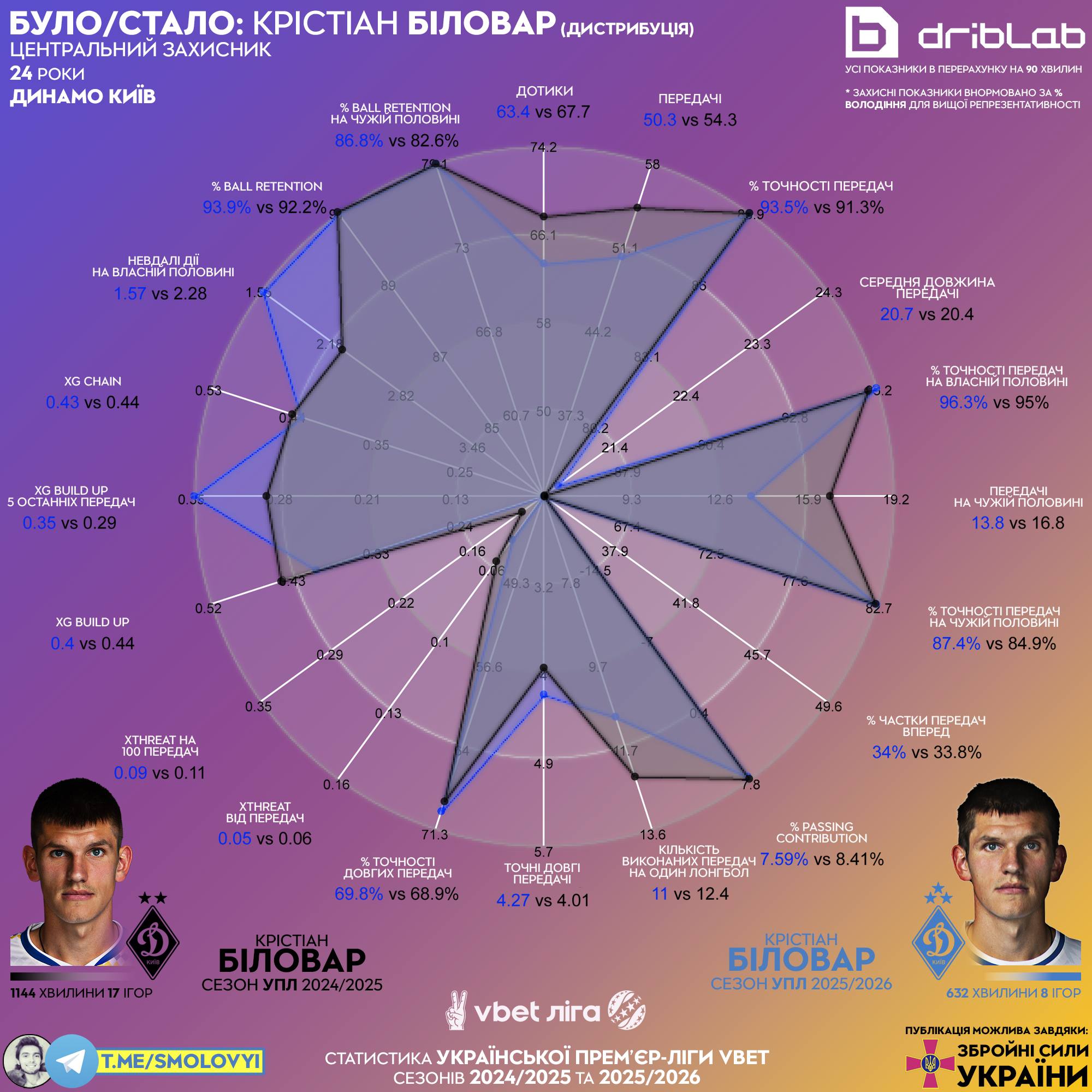 Да, в "Динамо" есть более доминантные ЛЦЗ (Тиаре, Михавко), выполняющие главную роль в дистрибуции. В сборной он тоже есть – Матвиенко. И тут мы снова возвращаемся к борьбе, где Биловару теоретически нужно быть готовым заменить… Забарного. Не вижу как это может работать. Нынешний Попов существенно ближе к скамье сборной, чем Биловар - хотя бы тем, что может выигрывать дуэли", - заявил Смоловой на собственном телеграм-канале.