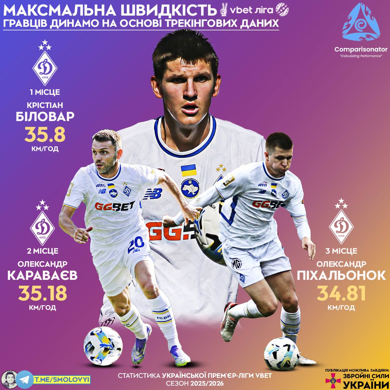 Футбольный блогер Михаил Смоловой с помощью статистики выяснил, что самую высокую скорость в УПЛ в этом сезоне в составе "Динамо" развил Кристиан Биловар.