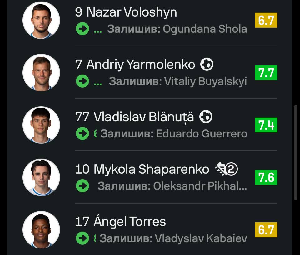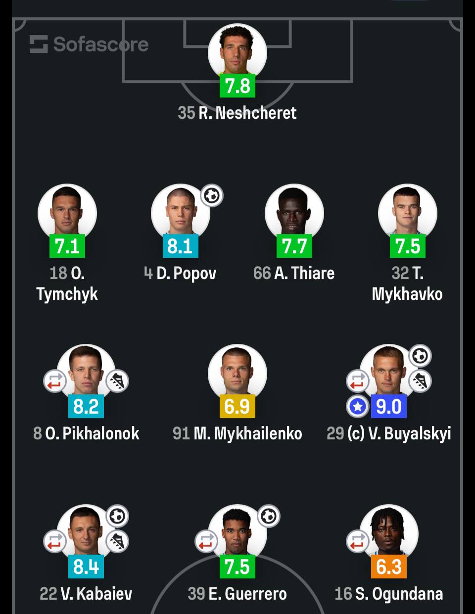 Статистический портал SofaScore лучшим игроком матча считает Виталия Буяльского, получившего оценку 9,0.