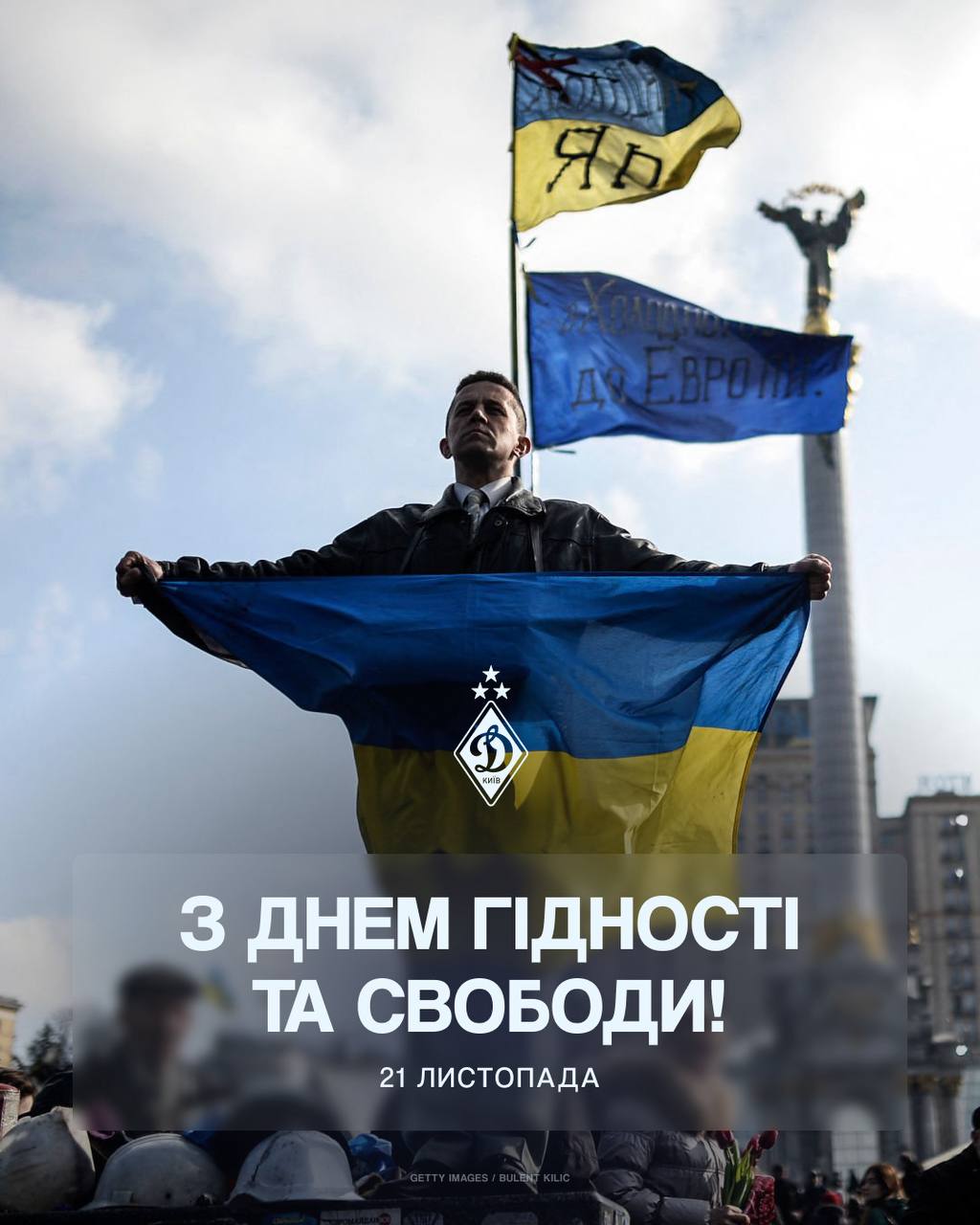 "Сегодня "Динамо" вместе со всей страной вспоминает события и людей, которые устояли за право Украины быть свободной и демократической. Оранжевая революция и Революция Достоинства стали символами силы нашего народа – способности защищать свои ценности и будущее.
