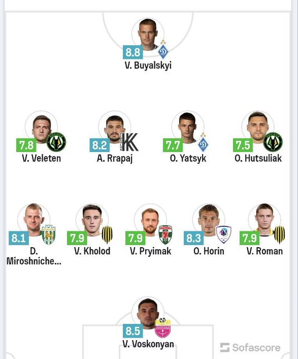 Статистический портал Sofascore включил динамовцев Виталия Буяльского и Александра Яцыка в символическую сборную 14-го тура УПЛ.