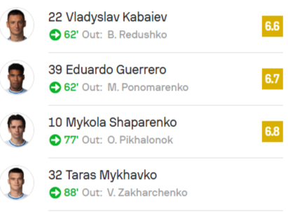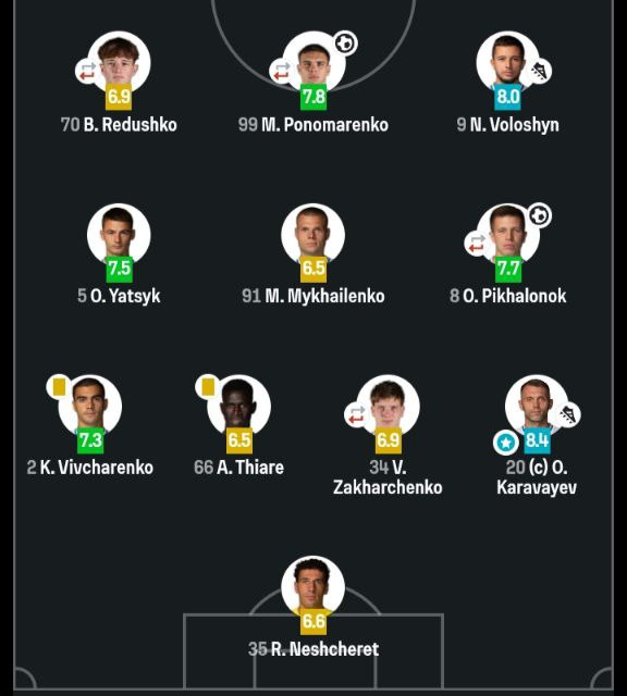 По версии статистического портала SofaScore лучшим игроком матча стал защитник киевлян Александр Караваев, получивший оценку 8,4.