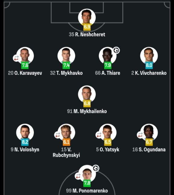 Лучшим в киевской команде стал Назар Волошин (оценка - 8,2), совсем немного ему уступил Константин Вивчаренко (8,0).