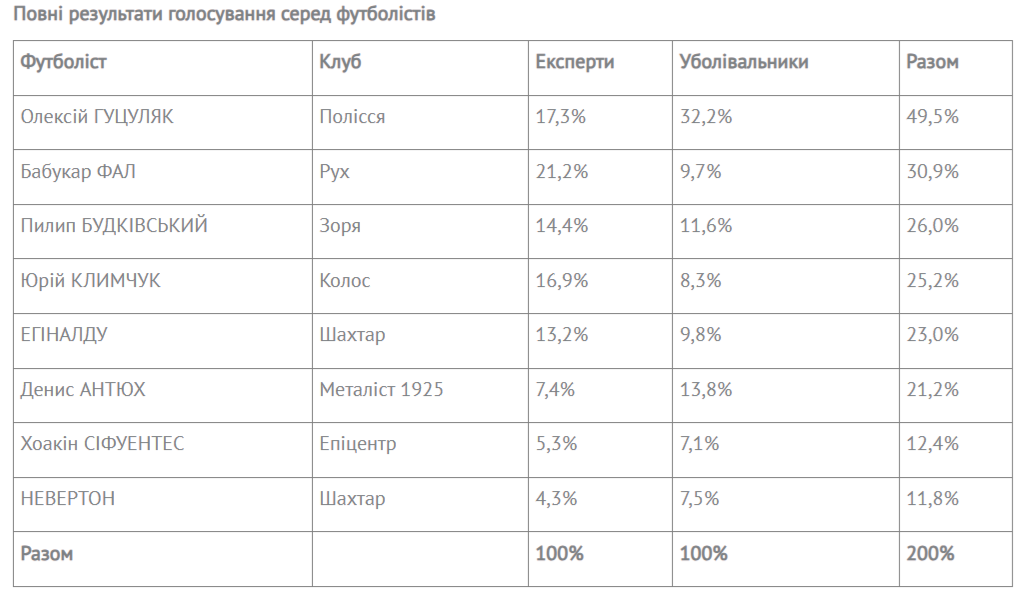А на втором этапе состоялось собственное голосование, как и раньше в сезоне 2025/26: отдельное – среди болельщиков в интернете и отдельное – среди комментаторов, экспертов УПЛ ТВ и представителей СМИ.