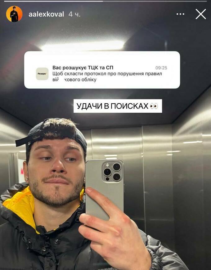 Он сделал селфи, к которому прикрепил уведомление от ТЦК, что его разыскивают для составления протокола о нарушении правил военного учета.