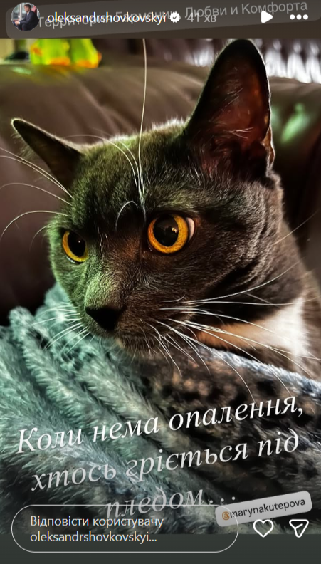 "Когда нет отопления, кто-то греется под пледом", - написал Шовковский в соцсети и добавил фото укутанного кота.
