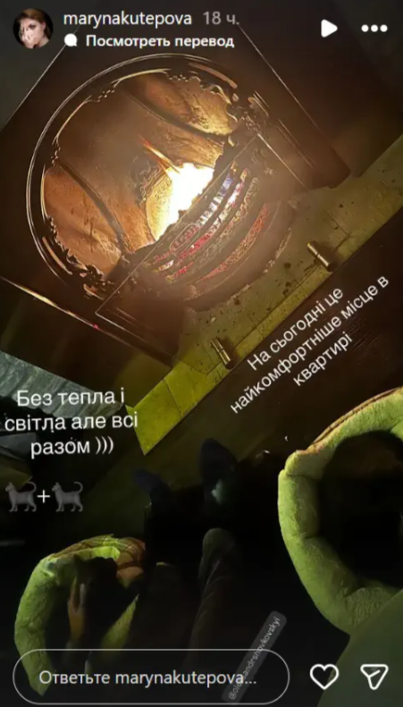 Кутепова призналась, что сейчас самое комфортное место в квартире – вблизи камина, где, по крайней мере, чувствуется тепло.