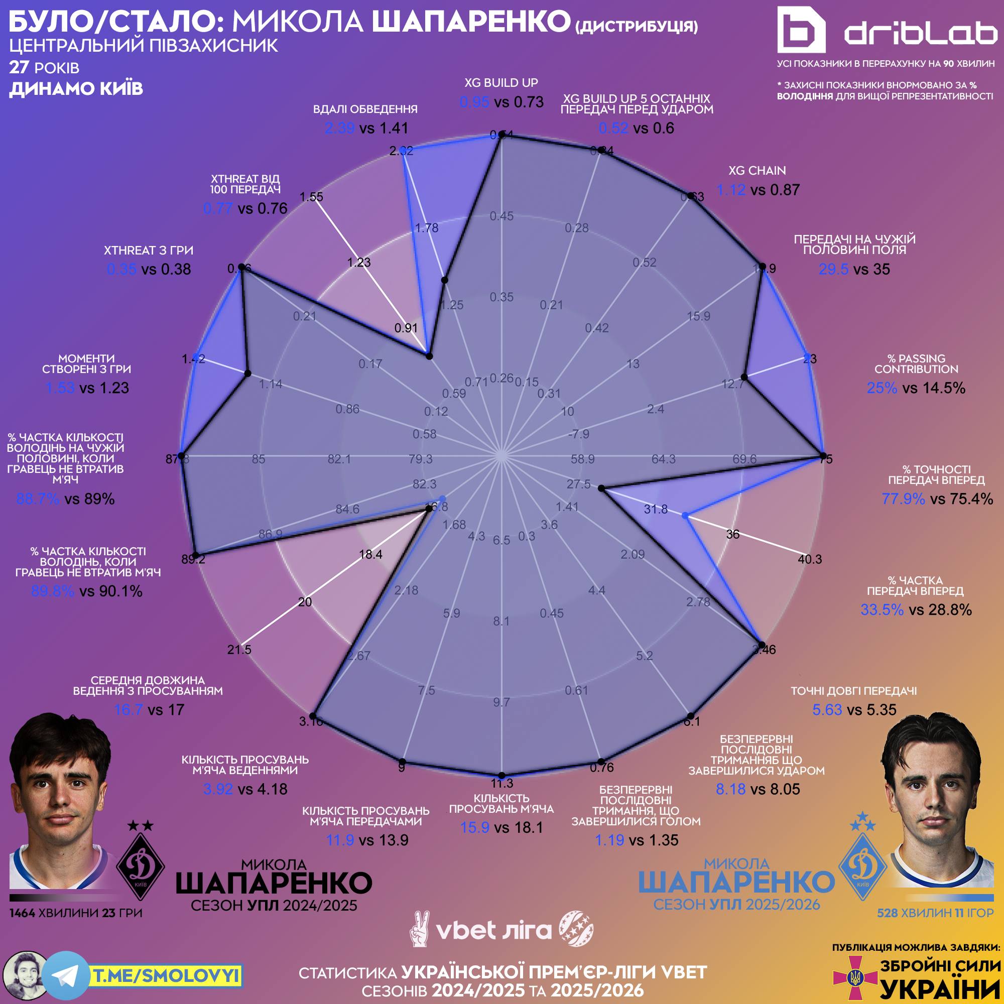 • лидер по xGBuildUp (0.95/90) – это xGChain, из которого отняли xG и xA там, где Шапаренко пробивал или ассистировал удару;