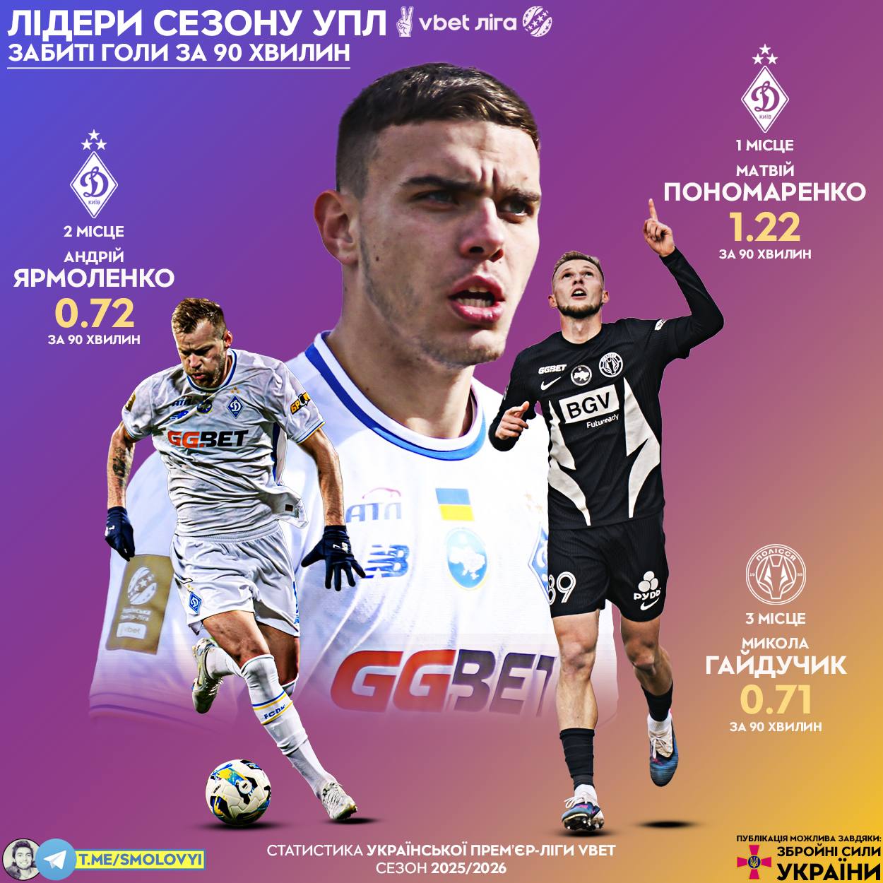 Блогер Михайло Смоловий у своєму Телеграм-каналі виділяє лідерів сезону УПЛ із забитих м'ячів.