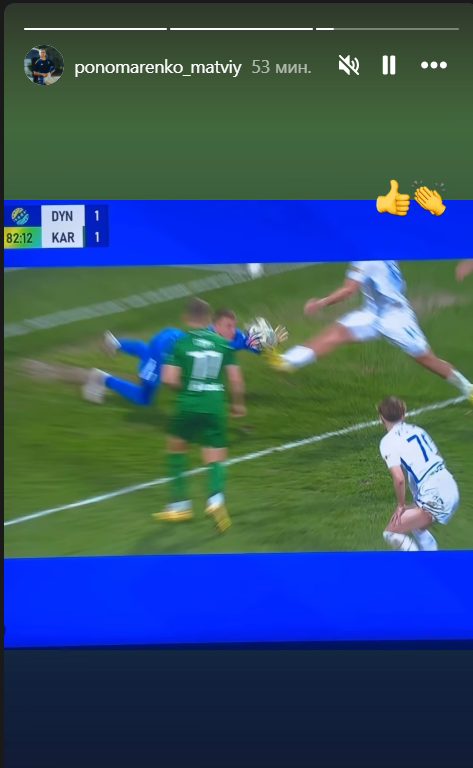 Нападающий "Динамо" Матвей Пономаренко в своем Instagram выложил фрагмент эпизода с его гола "Карпатам", который потом отменил судья.