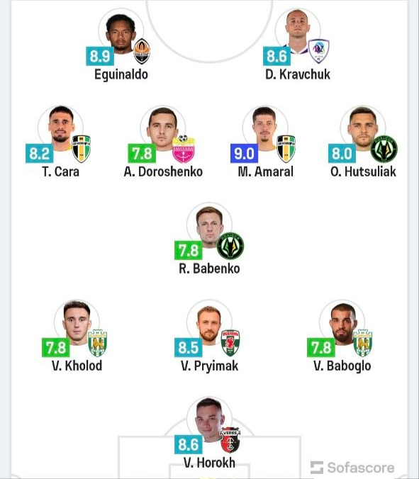 Статистический ресурс SofaScore составил символическую сборную 22-го тура УПЛ.