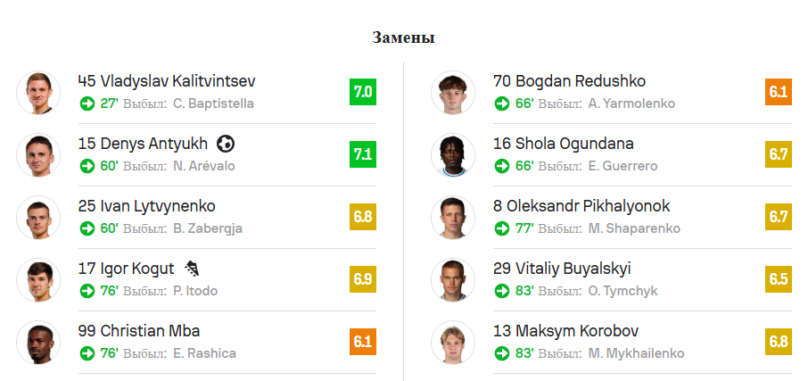 Статистический портал SofaScore выставил оценки игрокам "Динамо" за матч с "Металлистом 1925".