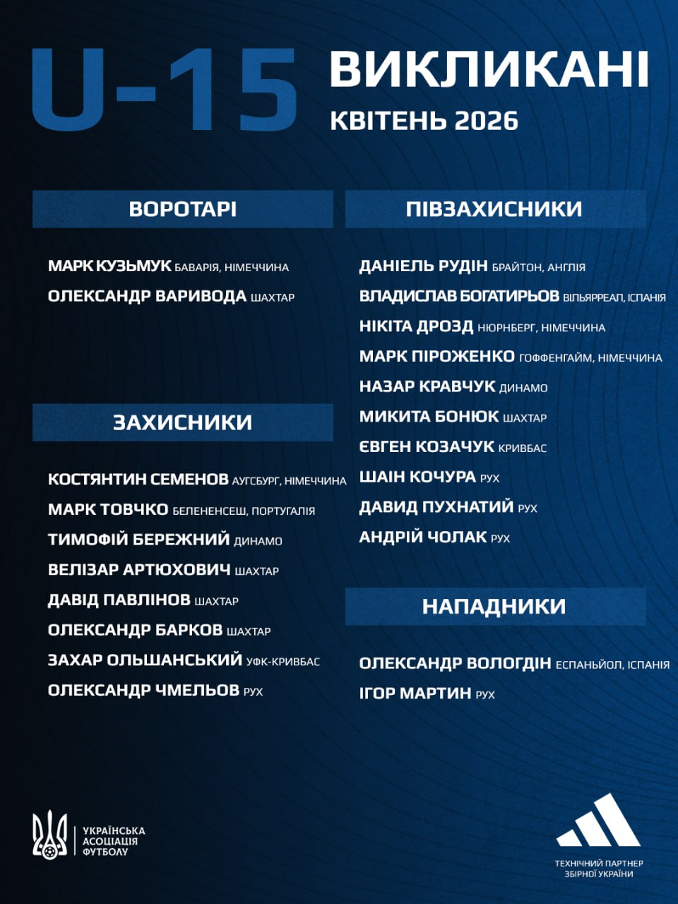 Защитник "Динамо" Тимофей Бережный и полузащитник киевского клуба Назар Кравчук получили вызов в сборную Украины U-15.