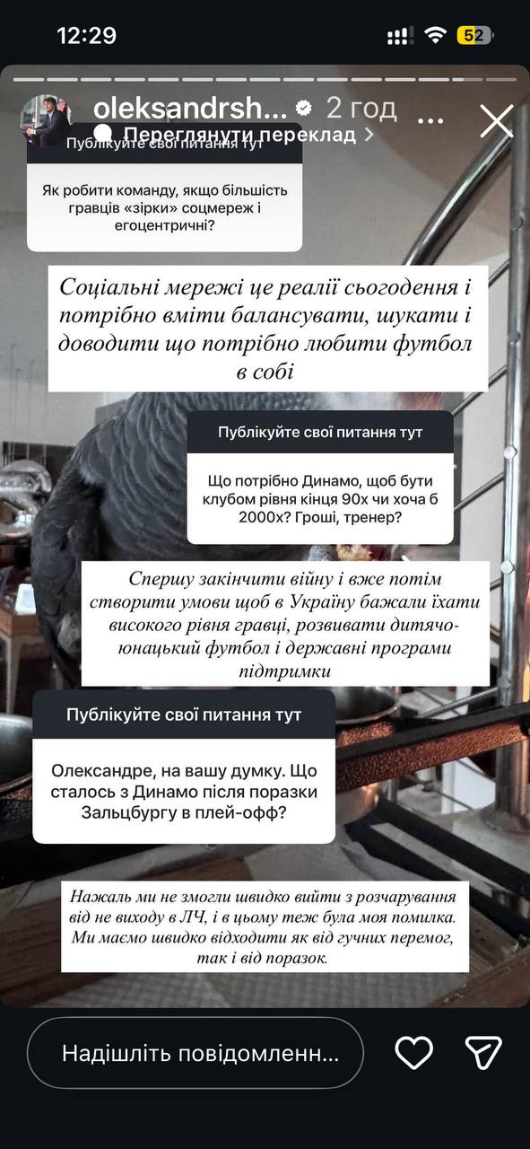 Бывший тренер "Динамо" Александр Шовковский ответил на вопросы подписчиков в сторис своего Instagram.