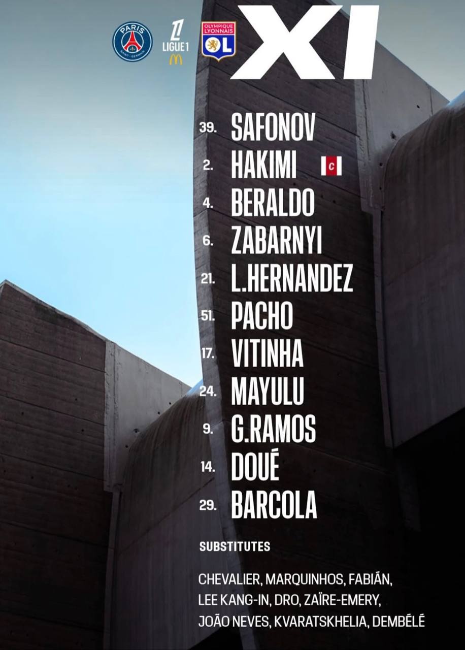Украинский защитник ПСЖ Илья Забарный выйдет на матч против "Лиона" с первых минут.