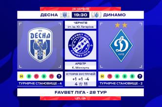 В воскресенье, 28 июня, «Динамо» проведет матч 28 тура Favbet Лиги против «Десны». Начало встречи в Чернигове в 19:30.Ситуация с дисквалификациями и потенциальными отстранениями для отдельных игроко...