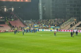 Украинские болельщики идут на стадион поддержать желто-синих в матче с Боснией и Герцеговиной.
