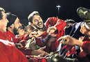 Игроки выполнили требование, раздевшись по пояс, и передали форму на фанатский сектор...