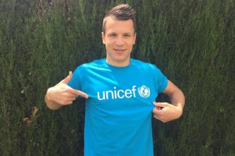 Украинский вингер "Севильи" Евгений Коноплянка поддержал Международный чрезвычайный детский фонд ООН (UNICEF), выложив в своем Твиттере фото в футболке с логотипом организации.
