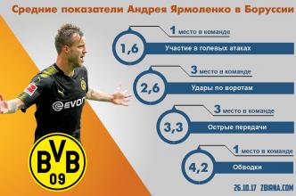 На одно результативное действие Ярмоленко тратит в "Боруссии" 93 минуты. Говорят цифры