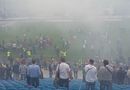 Фанаты киевского "Динамо" выбегают на поле стадиона имени Лобановского, чтобы отпраздновать победу "бело-синих" в чемпионате.