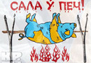 Возле стадиона в Минске белорусские фаны развесили плакаты "Сала у печ"