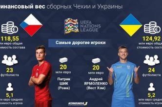 По средней стоимости футболистов Украина уже обыграла Чехию на 100 тыс евро