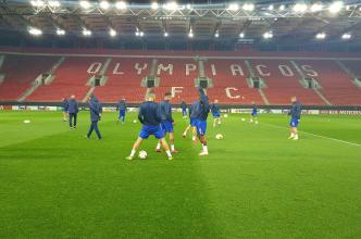Игроки "Динамо" выходят тренироваться на стадионе "Олимпиакоса".