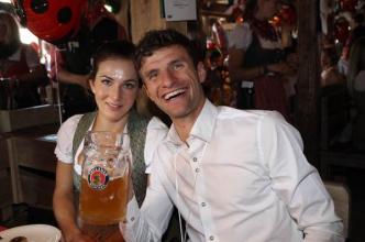 Полузащитник "Баварии" Томас Мюллер в твиттере поделился фото с Октоберфеста."Очень рад быть на Октоберфесте со своей женой Лизой", написал Мюллер.