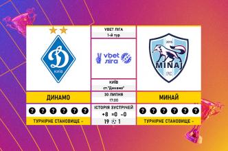 В воскресенье, 30 июля, состоится матч 1-го тура VBET Лиги, в котором киевское «Динамо» дома будет принимать «Минай» из одноименного населенного пункта, близ Ужгорода на Закарпатье. Матч пройдет в Кие...