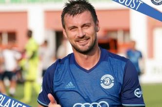 Нападающий "Динамо" Брест весело проводит время после победы в матче Кубка Беларуси против "Шахтер" из Солигорска.