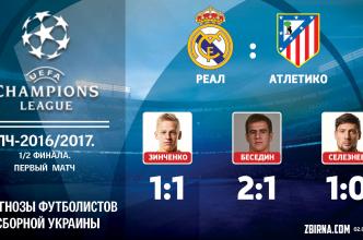 Уже по традиции накануне решающих поединков Лиги чемпионов в качестве прогнозистов zbirna.com выступили футболисты сборной Украины. На этот раз счет попробовали угадать полузащитник голландского ПСВ Александр Зинченко, нападающий киевского Динамо Артем Беседин и форвард турецкого Карабюкспора Евгений Селезнев...