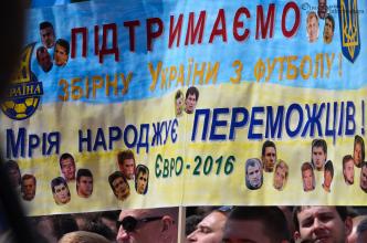 Национальную сборную Украины торжественно провели на чемпионат Европы-2016 во Франции.В праздничной церемонии, которая прошла на Михайловской площади