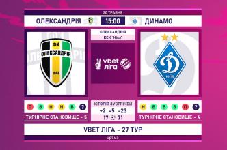 Матч 27-го тура УПЛ "Александрия" – "Динамо": статистическое превью