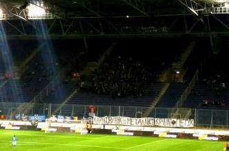 Болельщики «Днепра» вывесили баннер в поддержку своих коллег из «Металлиста».