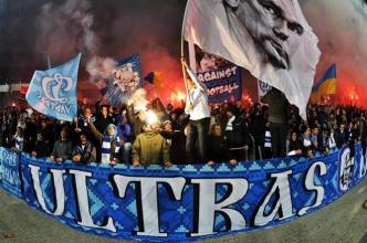 на яких хлопці слов’янської зовнішності прямують до чорношкірих фанів, а