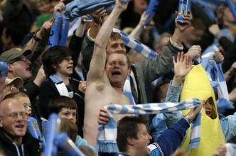 На матче с "Шахтером" в фан-секторе "МанСити" был вывешен баннер "Слава героям АТО from Man City"