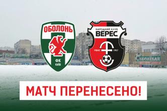 Матч ФК “Оболонь” – НК “Верес” було перенесено у зв‘язку з несприятливими погодними умовами.Про повернення грошей за придбані квитки ФК “Оболонь” повідомить додатково.Гра мала відбутися 12-го березня,...