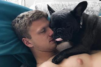 Жена полузащитника "Динамо" Никиты Корзуна Екатерина Борисевич в своем Instagram поделилась фото своем мужа и их домашнего питомца.