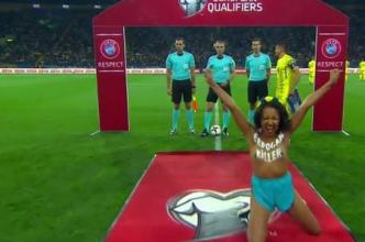 Голая активистка из FEMEN выбежала на поле перед матчем Украина - Турция