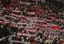 Фанаты французского "Генгама" на стадионе "Генгама" перед началом матча плей-офф Лиги Европы с киевским "Динамо".