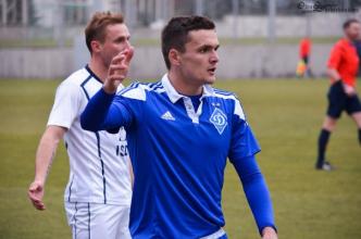 Полузащитник "Динамо" Александр Андриевский получает желтую карточку в товарищеском матче с "Десной".