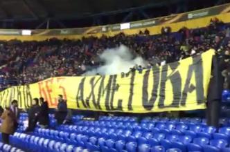 Ультрас развернули баннер и бросили несколько файеров за ворота.