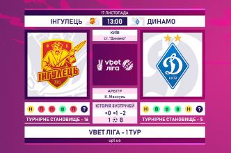 Сьогодні в Києві на стадіоні "Динамо" імені Валерія Лобановського відбудеться перенесений матч 1-го туру VBET Ліги, в якому київське "Динамо" зустрінеться з "Інгульцем" із Петрового Кіровоградської об...